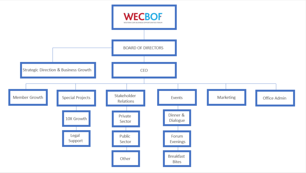 WECBOF is a non-profit organisation developed for the purpose of assisting businesses in the Western Cape to grow and to become sustainable. It is managed by a board of directors and CEO, and has strong alliances with both the public and private sectors to ensure that it meets its objectives.
